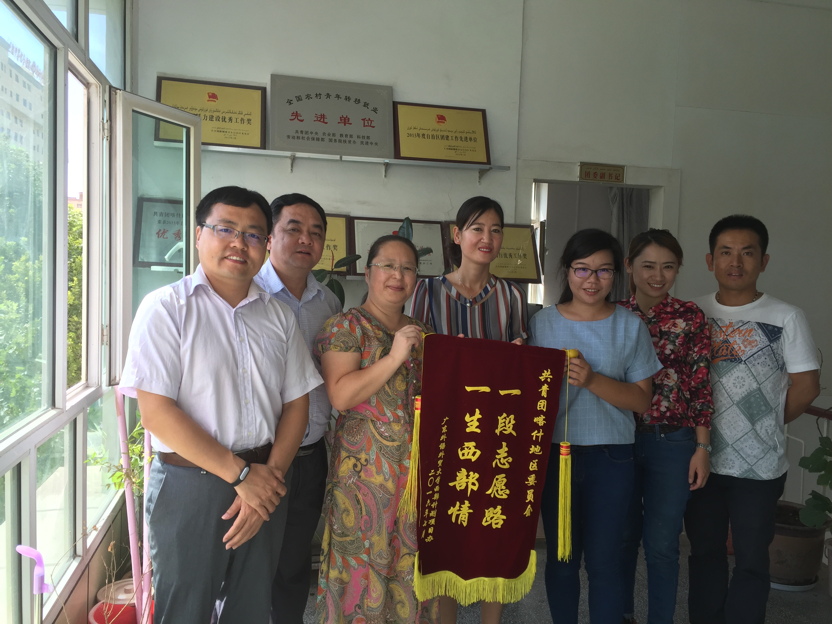 7月21日,学校挂职团干部及青年教师座谈会在共青团乌鲁木齐市委员会举行。共青团乌鲁木齐市委员副书记毛明•依明、新疆生产建设兵团第六师共青团农场副政委胡平参加了座谈会。我校青年干部阎茹(在共青团乌鲁木齐市委员会挂职)、王栋(在共青团新疆生产建设兵团第六师共青团农场委员会挂职)汇报一年的挂职工作。刘海春指出,希望两位同志能将共青团的工作经验带回去,能将艰苦奋斗、对党忠诚的精神带回去,“挂职结束,但工作没有结束。”他说,希望团乌鲁木市委将驻穗青年联系点放在广外,双方今后在新疆青年创业创新、青年人才汇集方面有更多的交流与往来。