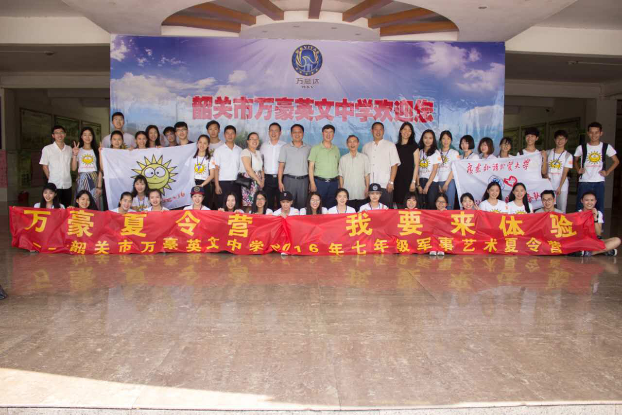 本网讯 7月20日,艺术学院Sunshine三下乡服务队在韶关市翁源县万豪英文中学举行大学生社会实践基地挂牌仪式。翁源县教育局副局长郭慧明、原翁源县委常委县宣传部部长涂泽寰、我校艺术学院院长李于昆、副院长李志刚、党总支副书记张莉、广东万威达集团董事长胡春万、万豪中学校长刘海东、万豪儒林小学校长贺莉等出席。翁源县电视台全程录像并进行了采访。