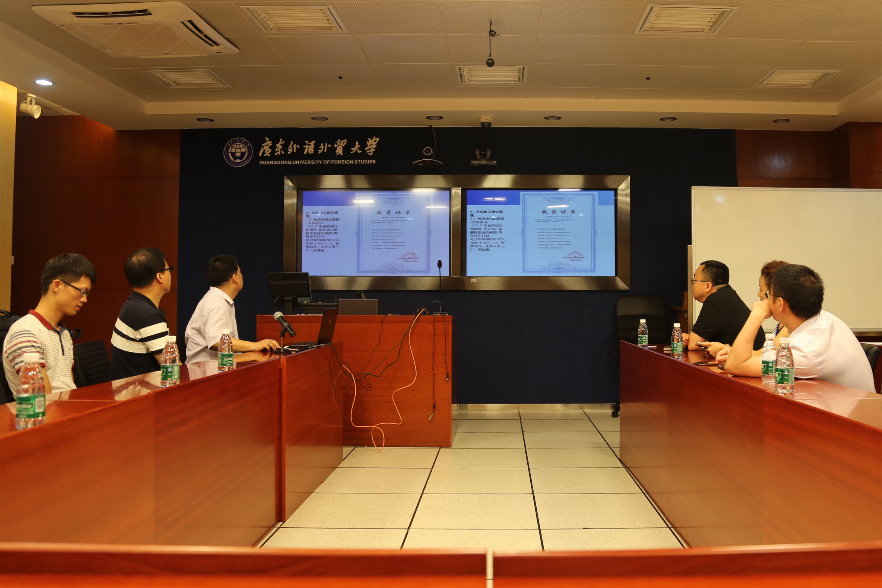 签约仪式后,李心广向深圳市方直科技股份有限公司诸位来宾介绍实验室自主研发的智能英语口语教学软件系统,并在现场对系统进行了演示。“该系统经过多年的研发已经申请或获得11项国家发明专利、13项软件著作权。”此软件将语音识别技术和评价算法运用于英语口语发音质量评价,帮助大学生英语口语学习,主要为英语口语学习者提供了电影学习,语音语调学习,演讲散文学习多个学习模块,方便学习者进行针对性的训练。系统能从音准、情感、语速、重音、节奏和语调等六个指标对口语学习者的发音进行智能评价。由于系统嵌入英语语音专家意见,系统在评分的同时对学习者的发音有指导性反馈意见。此软件还提供了web教师端,方便老师管理学生成绩,批改学生作业。对学生成绩以及班级总体成绩情况做了数据可视化处理,让老师能够清晰地知道每个学生的学习情况以及班级的总体情况。