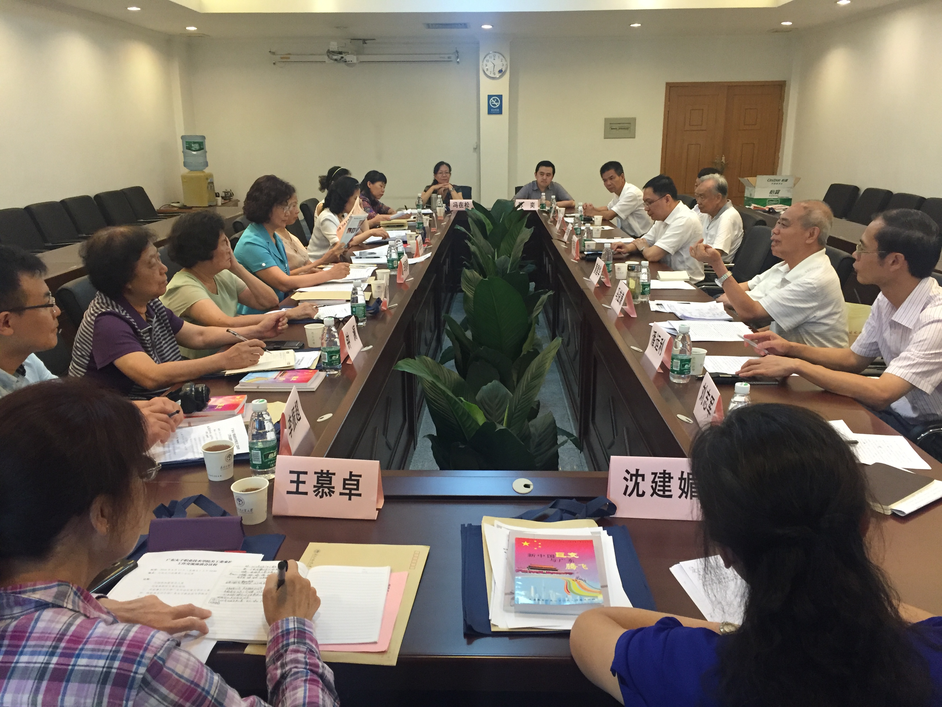 姚钦英介绍了广东女子职业技术学院关工委工作情况及学校在“立足现代服务业发展,培养女性专门人才”方面的工作特色。随后,我校关工委成员和广东女子职业技术学院关工委成员就讨论议题进行了积极的自由交流。