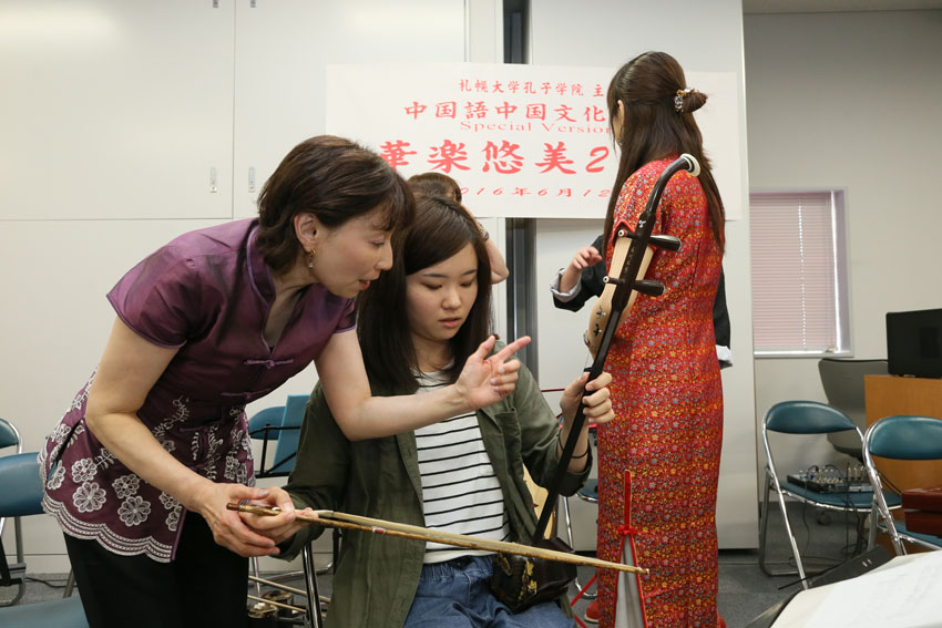 前来参加活动的孔院学员小川女士表示,“有机会聆听到这么多美妙的中国民乐,还可以亲身体验二胡演奏,我感到非常开心。”她还说,回去后她要用汉语写一篇文章来纪念今天的活动,与周围的日本人分享。