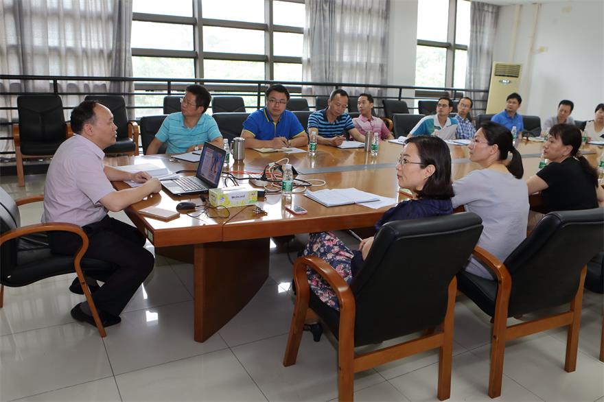 本网讯 6月8日,教育技术中心党总支部在北校区六教A421召开“两学一做”学习教育专题研讨会,特邀我校副校长阳爱民讲“践行‘四讲四有’,做合格党员”专题党课。中心领导、党总支委员、各支部委员参加了本次专题研讨会。会议由党总支书记范正华主持。
