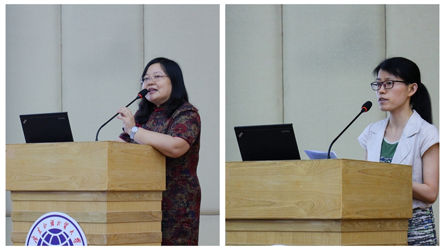 陈红霞(左)做档案工作报告,赵莉(右)为在场人员做专题培训