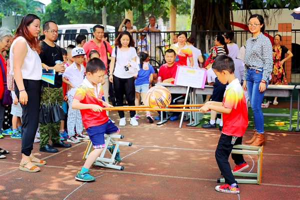 游戏你最红,快乐我做主游园活动游戏种类、形式多样,1000多名小学生和部分家长在快乐中玩游戏,在游戏中收获快乐。水果蹲、吸管运输、气象预报、打地鼠、绕口令、蒙眼击球、你比我猜等互动游戏,孩子们三个一群五个一组,纷纷拉上小伙伴们参与到趣味游戏中,笑声、喧闹声充满整个校园。扔、接球、两人三足接力赛、运西瓜、吸管运输等亲子游戏,孩子们在父母的带领下,仿佛展翅的天使,越玩越开心,而父母时不时流露出的宠爱的眼神,也让这个节日倍感温馨。通过这些丰富多彩的游戏环节,每人可赢得不同数量的“礼品兑换券”以换取自己想要的礼品,一小朋友换取奖品后高兴的说“感觉像过年一样”。