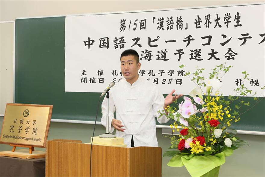 比赛在札幌大学孔子学院院长张伟雄的致辞中拉开序幕。他希望“选手们怀着一颗平常心面对比赛,在比赛中享受到超越自我的快乐和满足。”