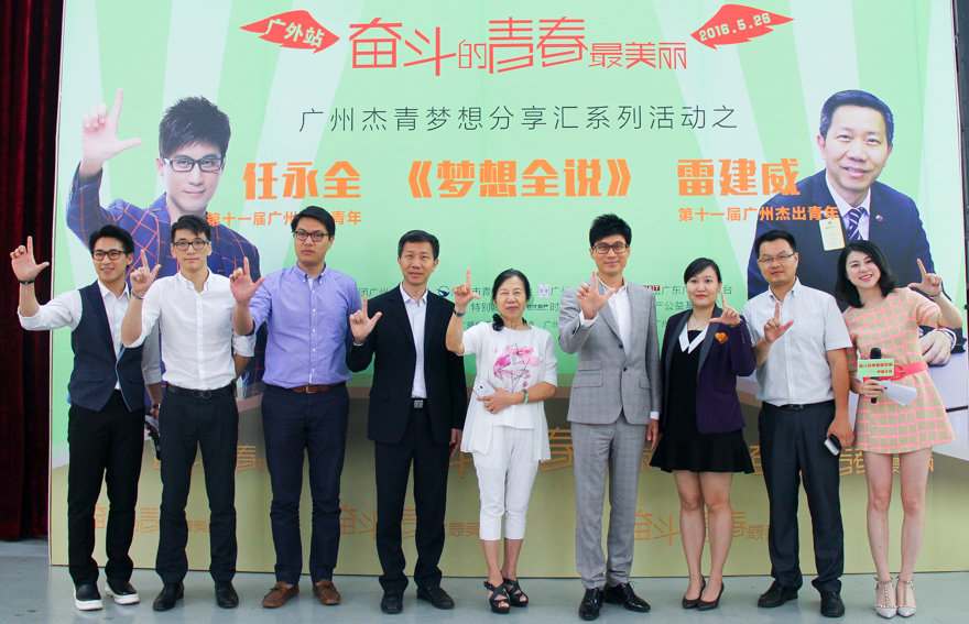 同届广州杰出青年,全国优秀律师雷建威也十分赞同任永全“坚持梦想”的观点。在前者的基础上,他补充,实现梦想需要“修身、齐家、治国、平天下”。他认为,自身的修炼是终生的事,不能停止,这是梦想的基石。而个人不仅仅要有自己的梦想,还要“治国”,有“以社会为己任”的大理想。“用我们的能力,哪怕是一分,也能为实现和谐的‘大同’社会贡献自己的力量。”除了本身的律师工作,雷建威还热心社会公益。作为中国狮子联会副会长,他在汶川地震时奔赴前线;作为广州市人大代表,他就经济、教育、民生等多个方面,一年提出12个议案......他为民请命,把人民的愿望当成自己最大的“梦想”。他一直坚持着,因为他深知“你的性命跟你的国家联系在一起”,他也坚信“各美其美,美人之美,美美与共,天下大同”。