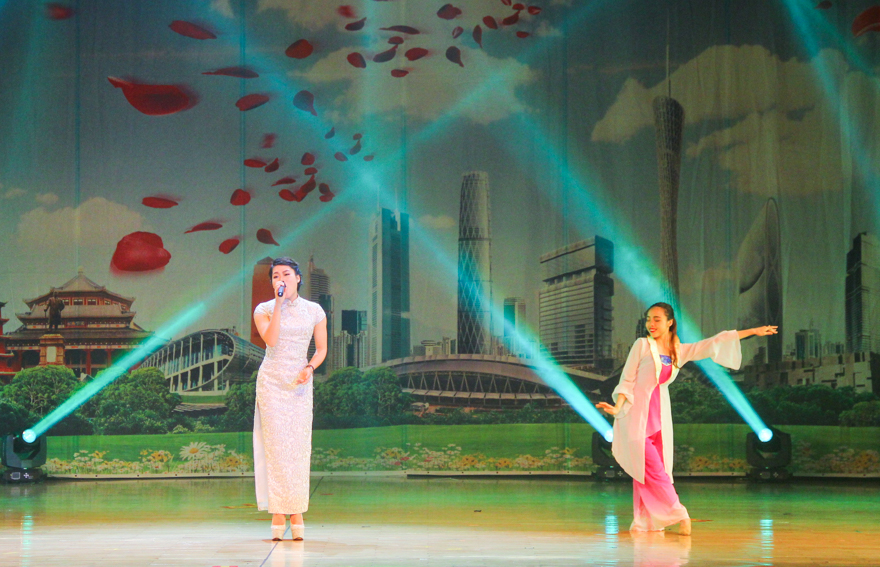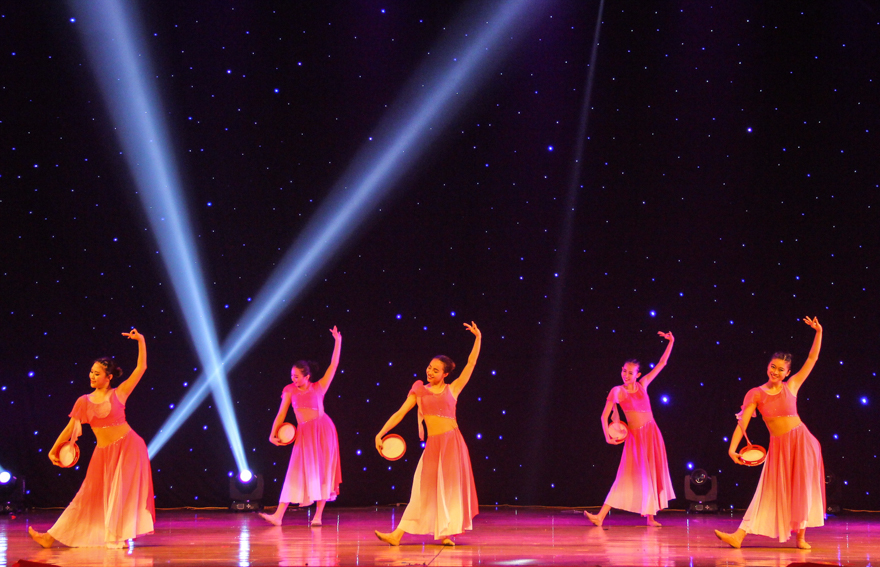 演出以热烈的维族舞蹈开场,推进现场气氛,5位穿着维族服饰的少女翩翩起舞,独具维族特色;同样是少数民族舞蹈,傣族舞蹈《傣源》表现出的是环境保护和爱护水源的理念,舞者时而狂野,时而柔美,仿佛真的置身于泉水边;而具有地方特色的岭南舞蹈《钱鼓新韵》中,舞蹈演员们手持钱鼓,呈现出岭南少女的俏皮可爱。