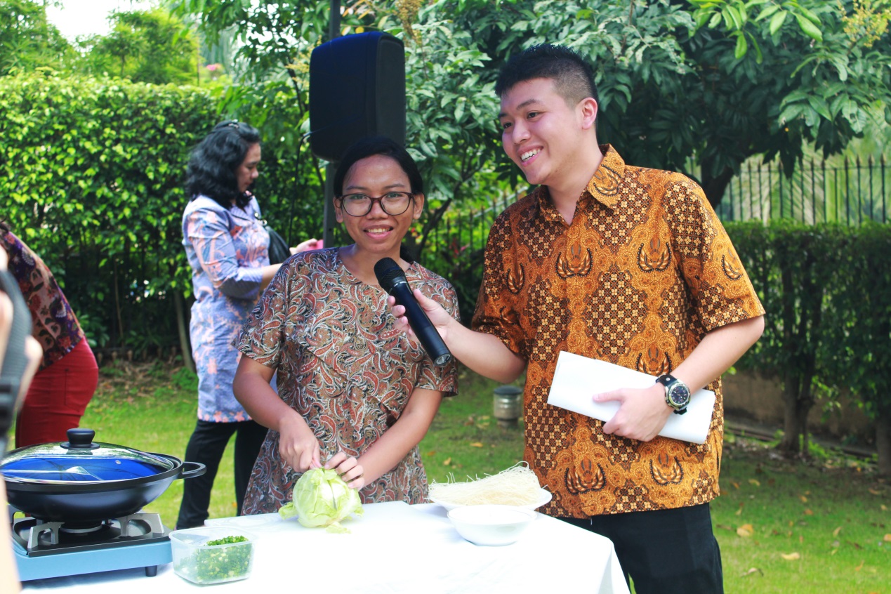 本次活动由我校印尼语系大二学生利剑文以及一名印尼留学生担任主持,全程使用印尼语。在随后的交流活动中,擅长厨艺的印尼语系外教Veronica现场烹饪印尼传统美食Soto Ayam;而我校学生则展示了广州美食--炒牛河、五香牛肉等,并邀请在场的印尼友人品尝。午餐时分,总领事邀请我校印尼语系师生一同品尝印尼美食,体验印尼文化。席间,领事馆工作人员及印尼留学生与我校师生就中印尼饮食习惯、旅游、历史文化等话题进行热情交流。