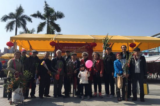 花市紧挨万达广场核心区,人流密集,气氛热烈,在气球、红灯笼和春联等衬托下体现出浓浓的年味和节日喜庆气氛。老干部们边走边看,尽情欣赏。临别,不少人买了心爱的盆桔、银柳、百合、康乃馨等,满载而归。