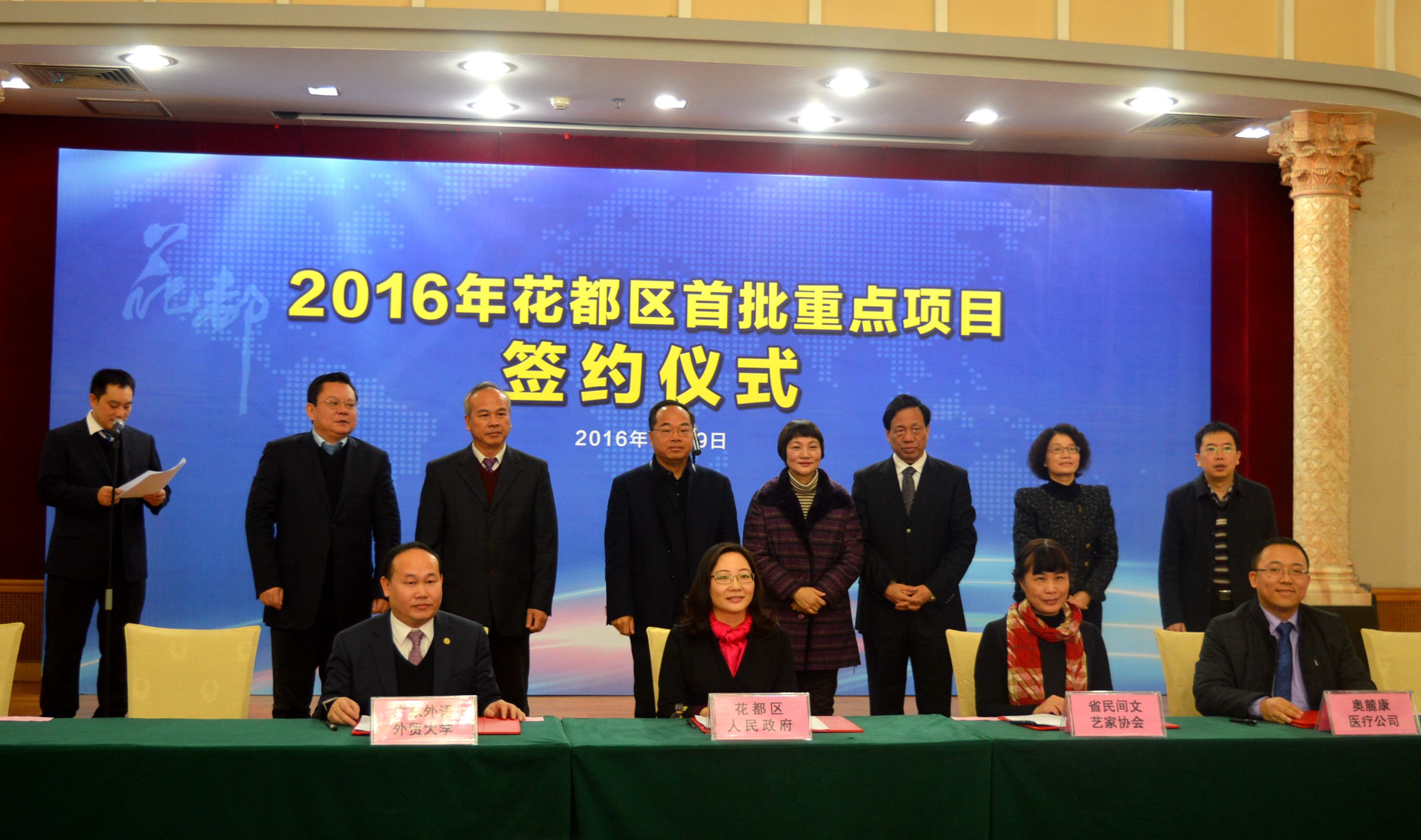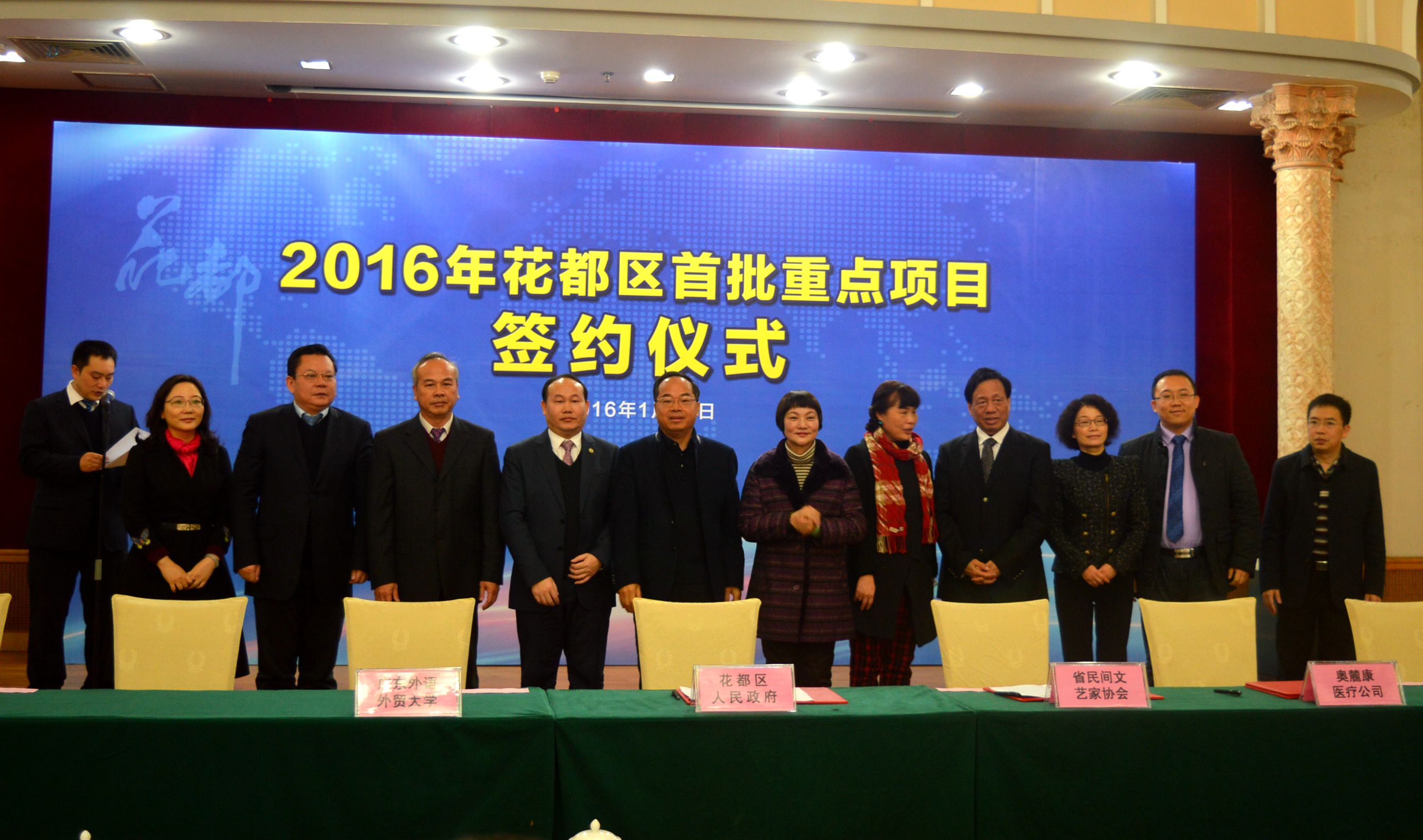 2015年,花都区委区政府全力以赴稳增长、调结构、强后劲,将空港经济、总部经济、教育医疗文化产业作为招商引资的重点之一,成功洽谈引进了广外附设花都外校、中国民间工艺博览园、广东血液肿瘤医院、海航广州运营基地项目等25个重点项目,广外附设花都外校是现场签约的唯一一个教育类投资项目。