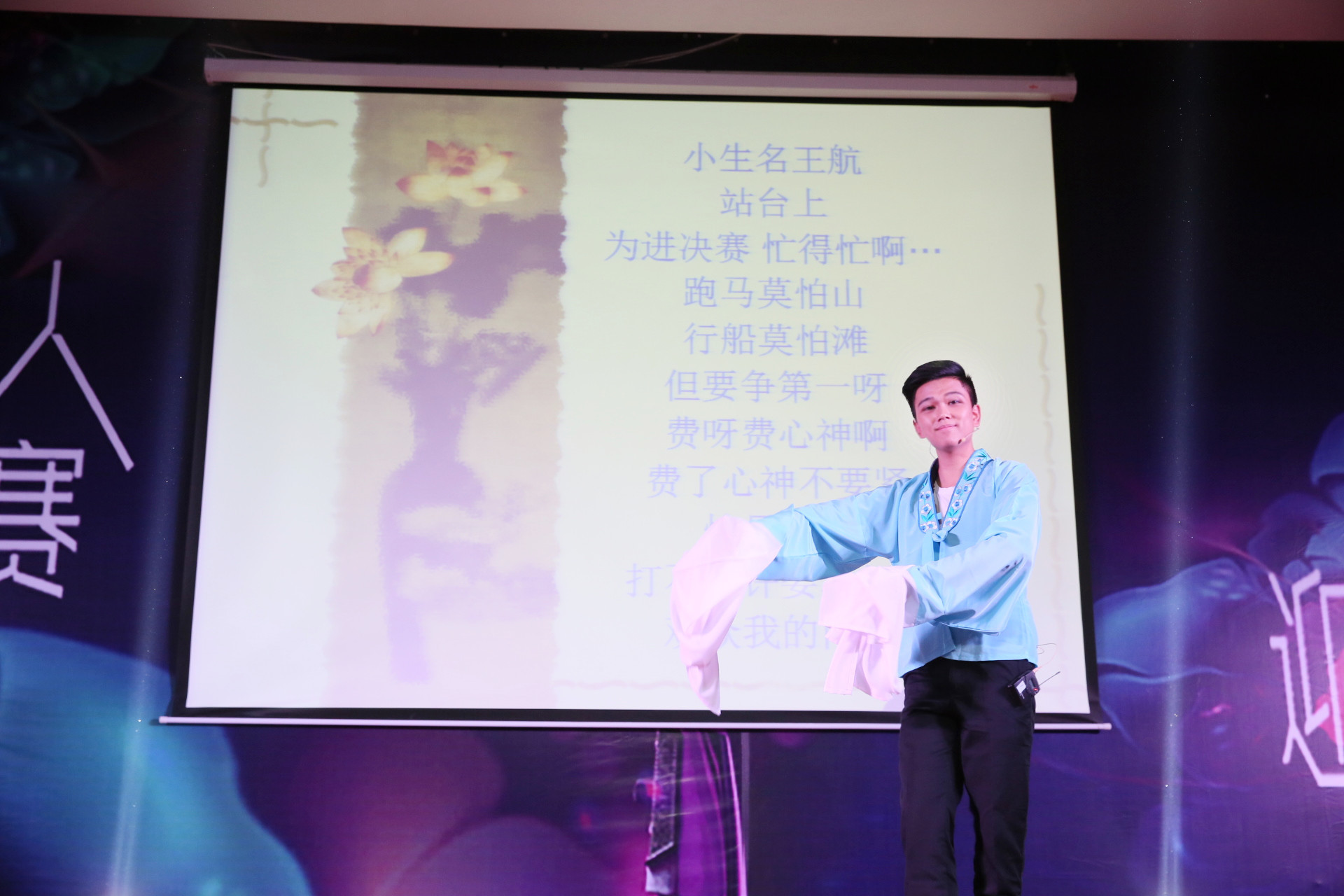面对激烈的竞争,我校学子王航沉着应对,凭借自身完善的主持综合能力与丰富的舞台表现力力压对手,最终夺得专业组的一等奖。