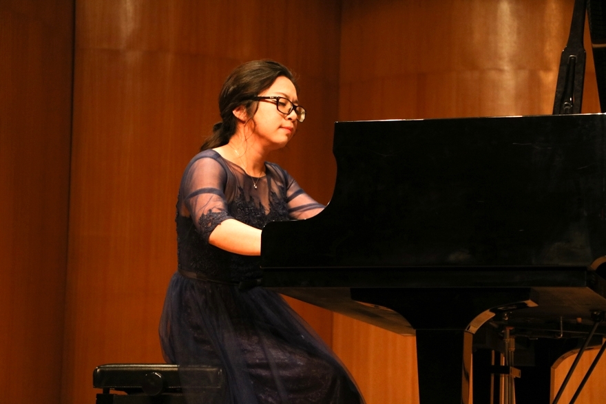 乌克兰籍青年钢琴家Maryna(那内米娃·玛丽娜)磅礴大气的琴声拉开了本次音乐会的序幕。她为我们带来了两首钢琴独奏,门德尔松的《d小调庄严变奏曲》和拉赫玛尼诺夫的《音画练习曲op.39no.9》。音符在她灵动的指下跃然而出——十七个变奏,时而缓慢,时而急促。加拿大籍的淦楠老师带来钢琴独奏《丑角的晨歌》和肖邦的《降A大调波洛奈兹舞曲》,讲述了英雄心里的民族情怀。