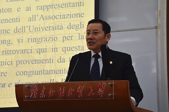 开幕式上,方凡泉对所有出席此次活动的来宾们表示了热烈的欢迎,随后他简要地介绍了意大利语教学在广外的发展情况及已取得的成绩,并预祝研讨会取得圆满成功。