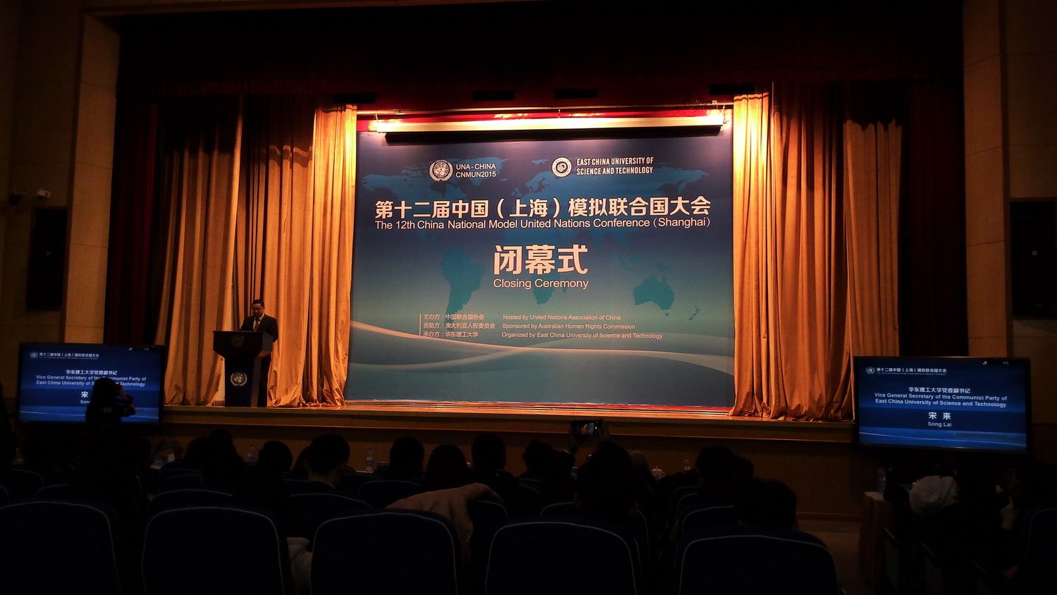 本网讯 11月27日至29日,2015年第十二届中国模拟联合国大会在华东理工大学举行。本届大会首次设立了中文委员会。我校学子林翊获“杰出代表奖(Outstanding Delegate Award)”、陈红州获 “荣誉提名奖(Honorable Nomination Award)”。