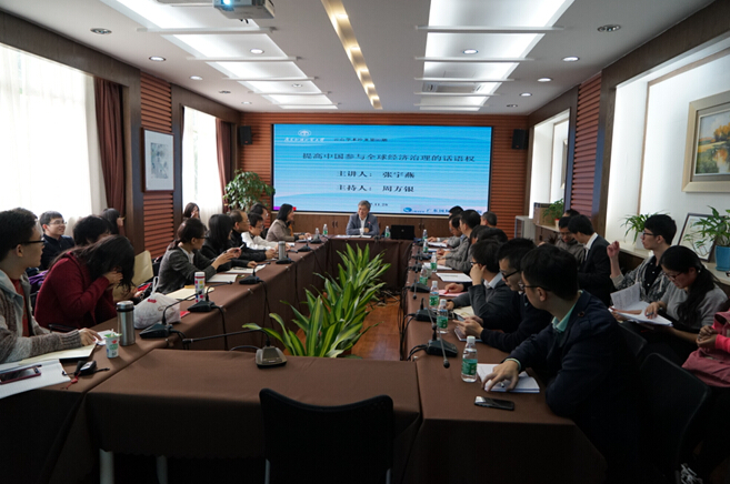 本网讯 近日,珠江学者、中国社科院世界经济与政治研究所所长张宇燕教授以“提高中国参与全球经济治理的话语权”为主题在广东国际战略研究院304会议室举行讲座。战略研究院全体研究员、欧洲学硕士生和博士生参加了讲座。讲座由广东国际战略研究院周方银教授主持。