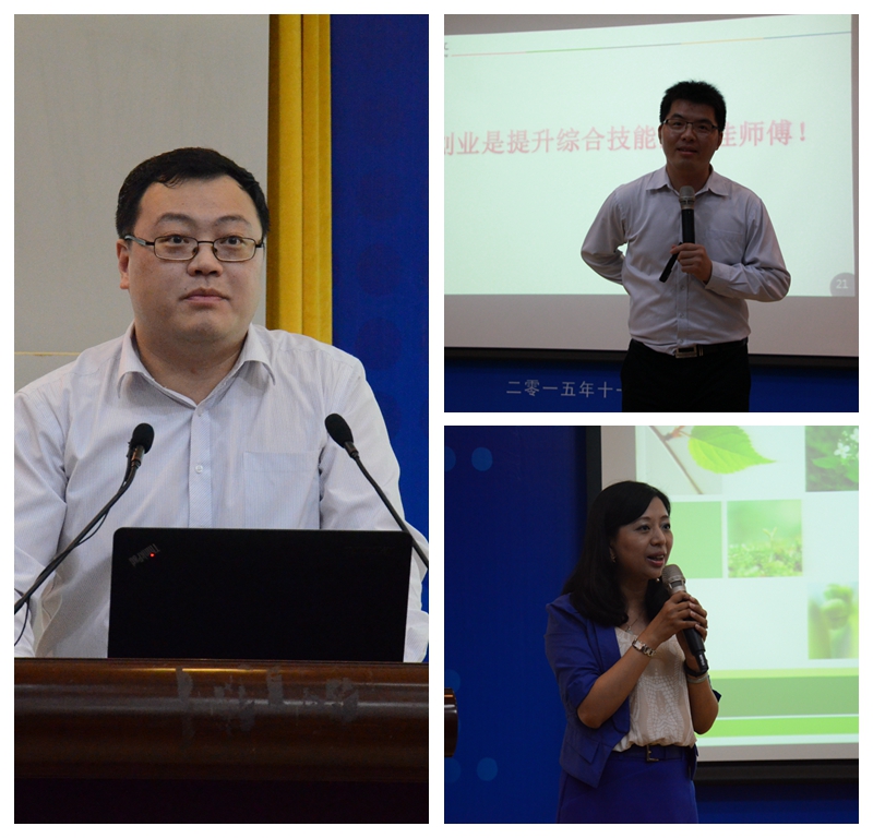 在分享会环节,李美燕针对500强企业青睐人才的条件,提议同学们要从性格兴趣、价值观和技能水平等方面正确审视自己,并重点提升学习能力、团队合作能力和责任心,从而使自己在招聘中脱颖而出。李蟠介绍了O2O产业及校园创业项目。所谓的“O2O”就是“OnlineToOffline”,即把线上的消费者带到现实的商店中去。O2O产业联盟是中国文化管理协会智慧城市委员会旗下的一支商业企业联盟组织,致力于帮助互联网创业者迈出实现创业梦想的第一步,帮助企业发掘自身在O2O生态圈的延伸价值,其中包括O2O资本、O2O大学、O2O孵化基地、E代送等。他从创业项目来源、支持流程、支持方式方面介绍了校园创业项目,为大学生创业提出建议。周文豪以自己的丰富的创业经验为基础,为在座同学们分析了大学生创业的选择与优势。作为大学生,创业前必须要思考自己是否适合创业。而当面对就业难的问题时,有两条路可走。一是强化能力,成为精英就业者。二是另谋出路,自己创业。创业可以将理论应用到实践,能够提升个人综合能力,适应各种岗位需要,锻炼一技之长,积累无限财富。对于大学生而言,有好的想法,好的平台,好的能力,创业并不困难。