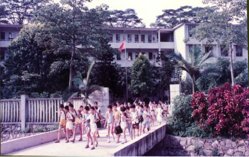 随着学校规模的不断扩大,老旧的小屋已无法满足教职工子女的入学入托需求。1973年3月,为进一步解决教工子弟的后顾之忧,经原广州市教育委员会批准,广州外国语学院附属学校成立,涵盖小学、初中和高中教育的全日制学校。1981年9月,云溪河边的新园舍投入使用,从此成为“小广外人”的成长摇篮。