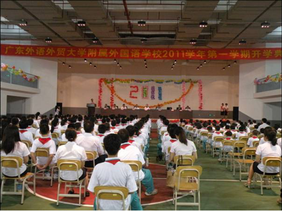 1996年,在广外当时校领导班子的主导下,外校将校区迁至外贸学院旧址——白云区大朗。这一步决策,不仅为外校的发展提供了巨大空间,也从管理权限上理顺了大学与外校的关系。在大朗这片土地上,外校不断发展壮大,至今,外校校园面积达320亩,建筑面积13万平方米,小学至高中150个班5600多名学生,800名教职工,已逐步进入“高投入、高质量、高效益”的良性发展轨道。