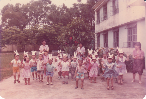 1970年10月,广东省革委会对广东高校实行“调、并、迁、改”,中山大学外语系、暨南大学外语系、外贸系以及广州外国语学校并入我校,大批专家名家进驻广外校园,子女教育和托管问题迫在眉睫。为满足教工子女入学需求,广州外国语学院附属学校(7年制)和广外幼儿园相继创办。虽然当时的附属学校只有几间陋室,幼儿园设在校园乙栋(现42栋)的一间小房子里,条件都非常简陋,但这却足以让广外的教师们免除后顾之忧进而潜心治学。