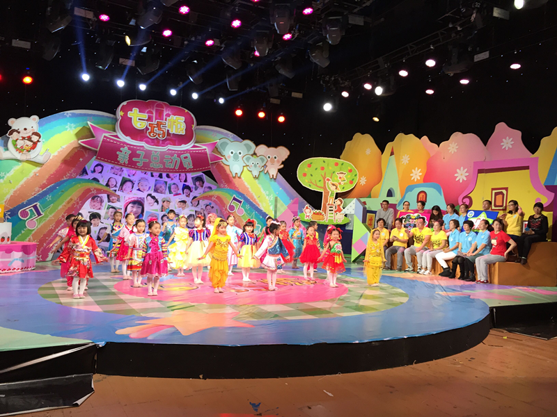 本次录制的节目包括舞蹈、亲子游戏和默契大考验。舞蹈《快来吧》是七巧板栏目固定的开场舞,我校幼儿园21名小朋友们身穿各国服装,用他们活泼可爱的表演充分展现了我园的国际化特色。在开场舞之后,小朋友们又表演了舞蹈《落雨大》,熟悉又好听的广东童谣加上孩子们的舞蹈充分展现了岭南特色。