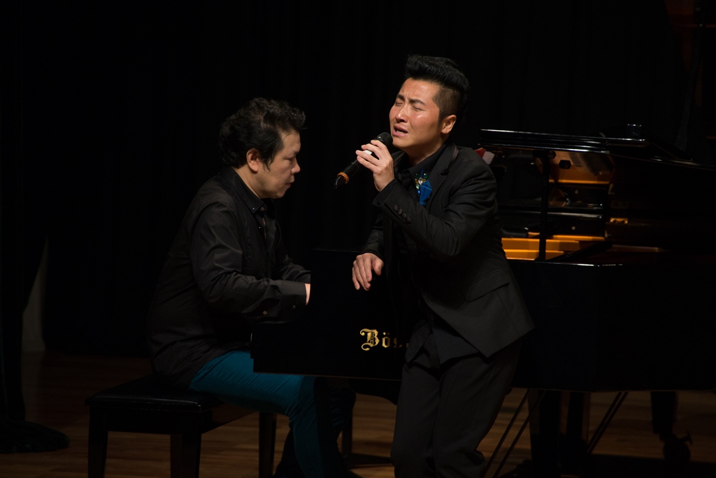 本网讯 11月15日晚,“弦动日月星辰——蔡常青即兴钢琴音乐会”在广州二沙岛星海音乐厅隆重举行。这是艺术学院副教授蔡常青给广东外语外贸大学建校五十周年和艺术学院建院十周年的献礼。中国歌剧舞剧院国家一级演员、歌唱家黄鹤翔也专程从北京赶来参加本次音乐会。艺术学院声乐教授王蓓作为嘉宾在蔡常青的钢琴伴奏下演唱了歌曲和歌剧选段。
