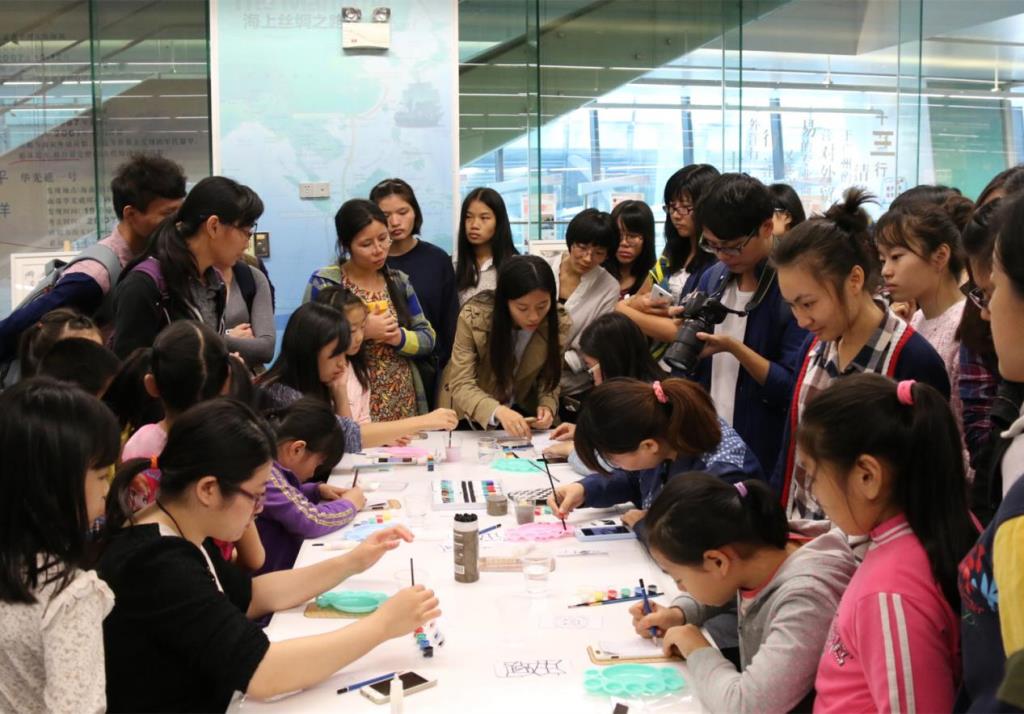 广外学生指导现场观众进行手绘创作