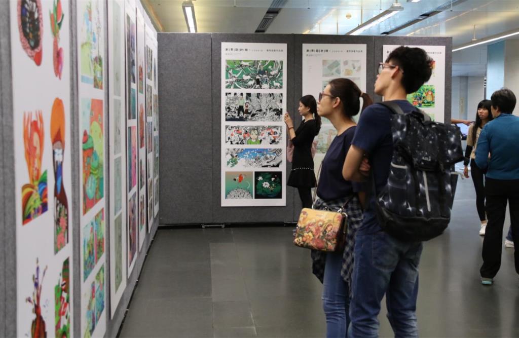 除了现场活动气氛热烈,在八楼展厅展出的艺术学院艺术设计系24位同学的优秀插画作品也吸引了众多读者驻足欣赏。