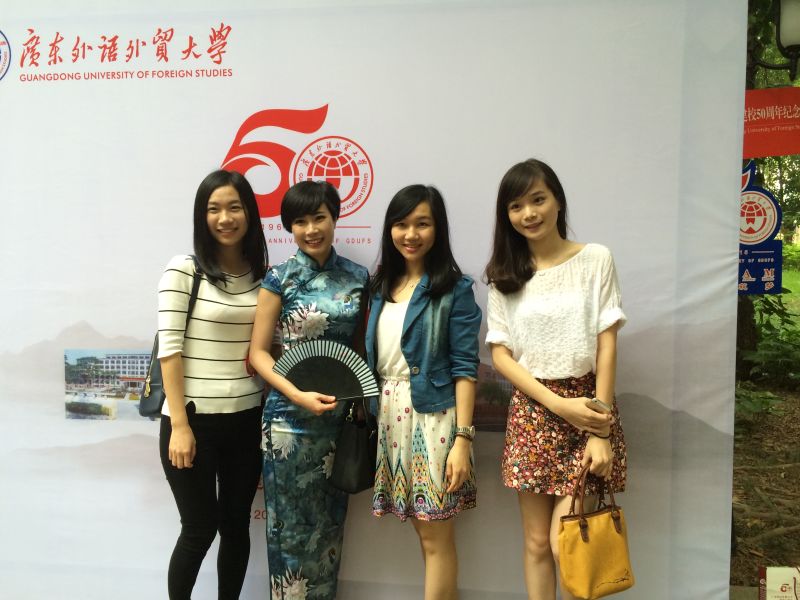毕业于06级日语系的天河校友会理事曹洁霞在为母校献上时装秀表演后接受了记者的采访。她曾是50对广外新人婚礼活动的策划人之一。此次回校参加建校50年庆典,她表示十分欣喜。“心情就像是回到了当年的毕业典礼,我们像当年一样在相思河畔拍了许多照片”。忆及大学时光,她开心地描述了早读以及课上老师讲述鬼故事的场景。她说最大的收获就是认识了一群志同道合的朋友,在加入了校友会之后与母校的联系更加密切,这让她更有归属感。此外,在广外的学习生活经历让她受益匪浅。“得益于学校的培养方式,广外毕业生们在工作中态度很积极,处事灵活,更有魄力,可以较快适应社会的需要。”她认为每个地方都有自己的特点,希望师弟师妹们利用好广外的优势,更加努力,让母校更加强大。