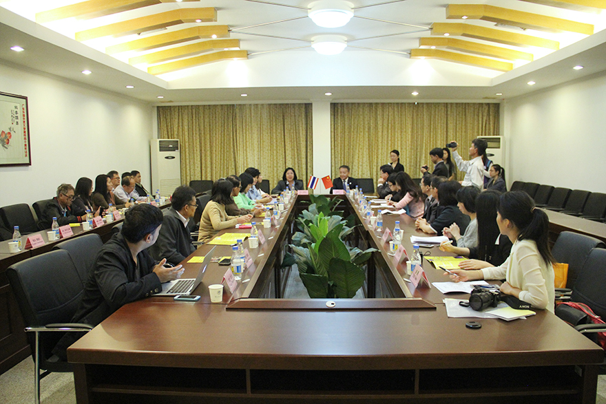 本网讯 11月11日,泰国第三区公共关系局局长杜昂曼·希吉维拉昆率泰北新闻团一行22人到访我校。我校副校长陈林汉在行政楼第三会议室就推广泰语教育与泰国文化、促进中泰两国文化教育交流与来宾举行座谈会。