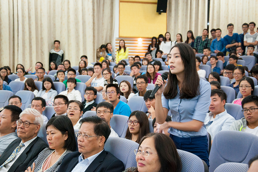 Anderson娓娓而谈,全场座无虚席,不少同学是站在后面听完了整场讲座。在现场提问的互动环节中,同学们把握住Anderson教授面对面交流的机会,争相举手向Anderson请教,金融学院院长易行健也参与其中,他认为对于国际化的货币而言,它需要一个全集化的流动性比较强的债券市场,并就债券市场发展的建议向Anderson提问,Anderson教的精彩回答引来现场掌声连连。