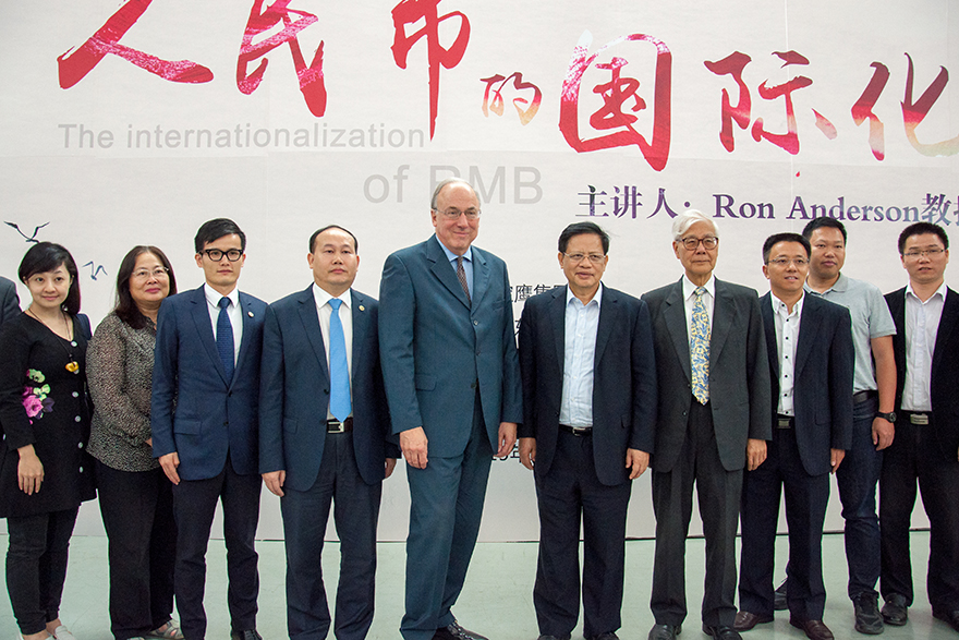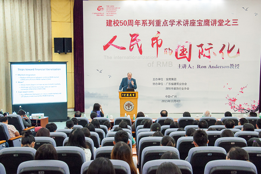 本网讯 11月4日晚,建校50周年系列学术重点讲座之宝鹰讲堂的第三场——伦敦政治经济学院原金融系主任Anderson教授的讲座《The internationalization of RMB》(人民币的国际化)在南校八角楼报告厅开讲。我校副校长阳爱民主持讲座。