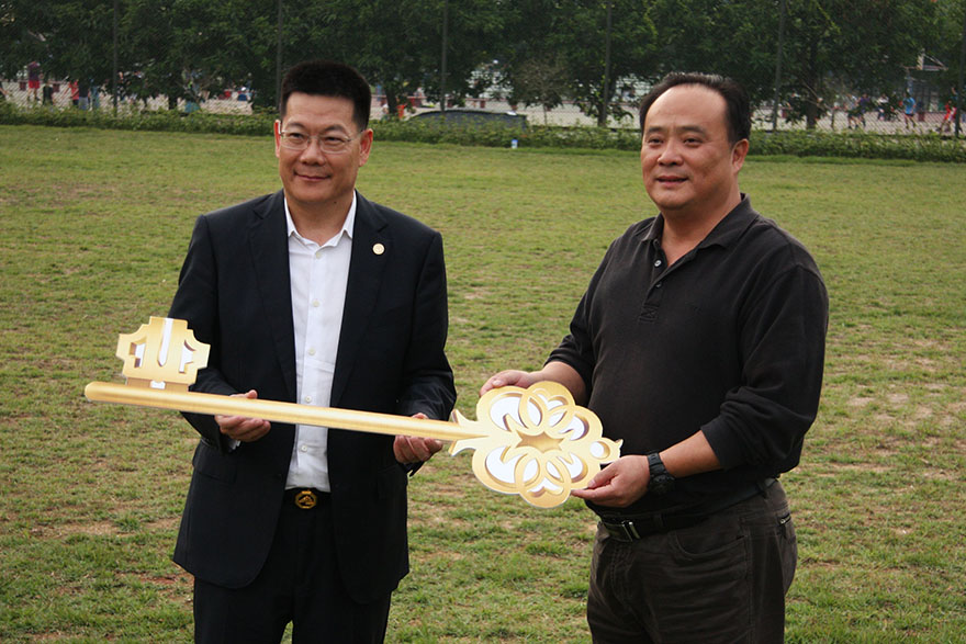 仲伟合代表学校接受南国商学院赠送的“金钥匙”