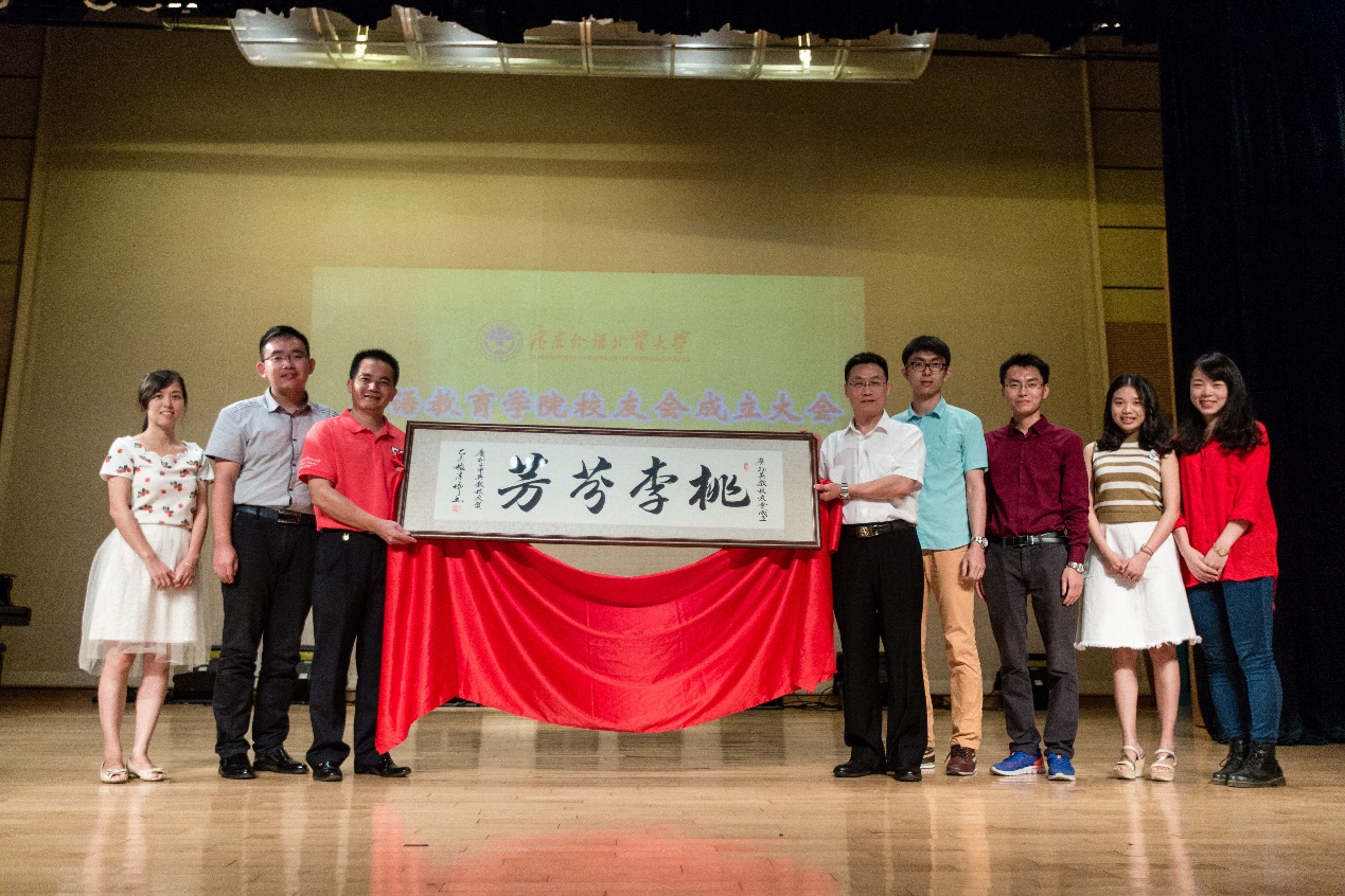 校友会常务副会长何洁铵代表校友也进行了发言,表达了校友们对大学生活的怀念,更表示了对学院未来发展的美好祝愿。在广州二中工作的校友集体向学院捐赠牌匾,祝贺英语教育学院校友会正式成立。