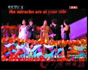 我校老师翻译亚运会滚动栏上的解说词(电视截图)