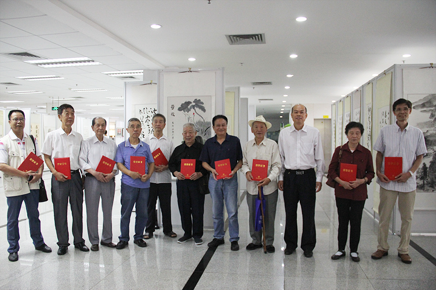随后,为表达对离退休教工的衷心感谢,卢景辉为离退休教工颁发证书。卢景辉、潘运利、孔晓明等一行人为书画展揭幕,并与离退休教工共同参观书画摄影展。