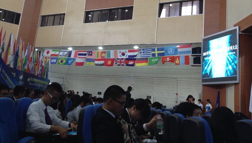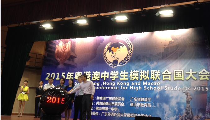 本网讯 我校模拟联合国协会担任学术指导单位、翻译学院硕士生刘瑜文诗担任各委员会总评委的2015年粤港澳中学生模拟联合国大会于10月16日——18日在佛山市第一中学举行。