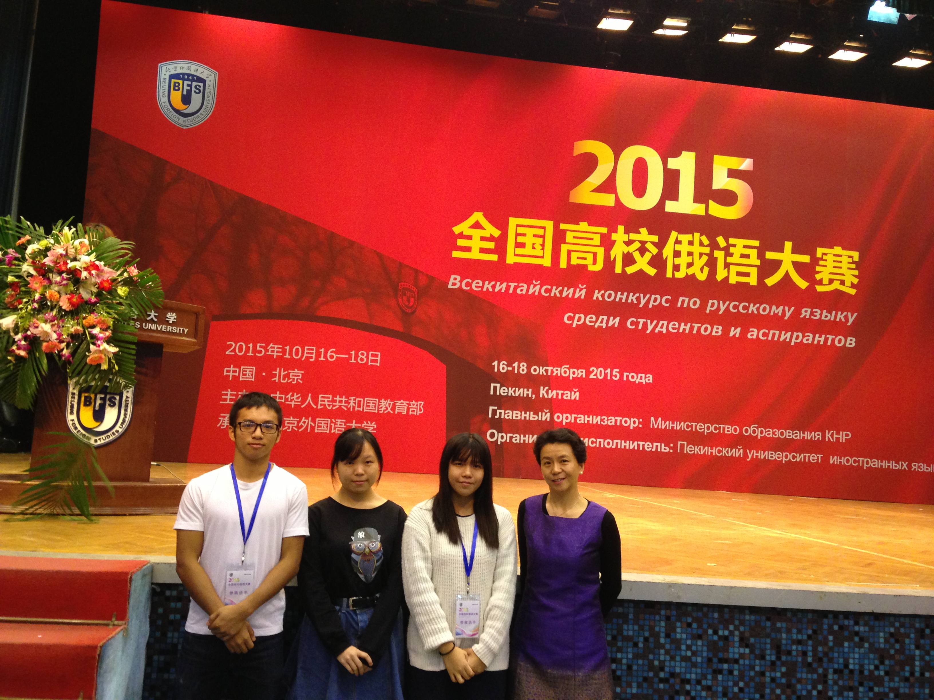 本网讯 10月16日至18日,全国高校俄语大赛在北京外国语大学举行。经过激烈角逐,我校周艳芬获得低年级组三等奖,并获教育部赴俄留学奖学金资助。康月获得演讲单项低年级A组三等奖,陈康裕获得演讲单项高年级A组三等奖。这是我校选手第十二次在此项高水平赛事中获奖。