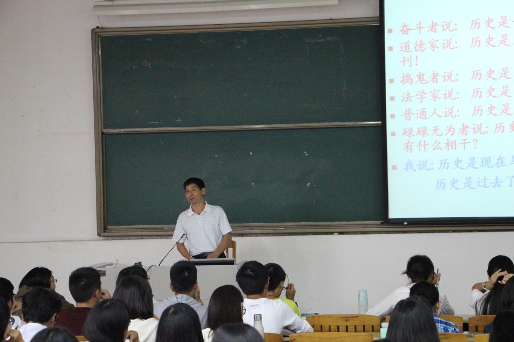郑德平这节课主要围绕“什么是历史?“为什么要学习历史?”、“怎样学习《中国近现代史纲要》”这三个问题展开,其中重点讲授青年大学生怎样学习《中国近现代史纲要》这门课程。郑老师授课风格幽默、风趣、生动,且富有激情。他在讲授这门课时,结合自身学习历史的经验及穿插一些生动且有价值的史例,深入浅出,娓娓道来,不时博得同学们的热烈掌声。课后,新闻社记者对同学们进行采访,他们普遍反映郑老师的课堂幽默风趣、引用的历史典故大大增长了他们的知识 、开阔了他们的视野,更好地实现了把思想性和政治性融汇在历史课的教学过程中。