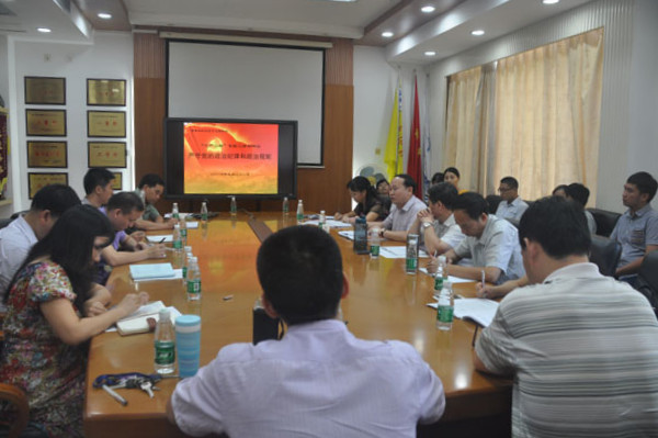 本网讯 9月28日下午,信息学院党委中心组在南校区院系办公楼201会议室召开 “三严三实”专题二的学习研讨会,主题为“严守党的政治纪律和政治规矩”。阳爱民副校长、信息学院党委委员、领导班子成员、重点实验室领导、系(部)主任、辅导员等参加此次学习,会议由敖湘晖书记主持。