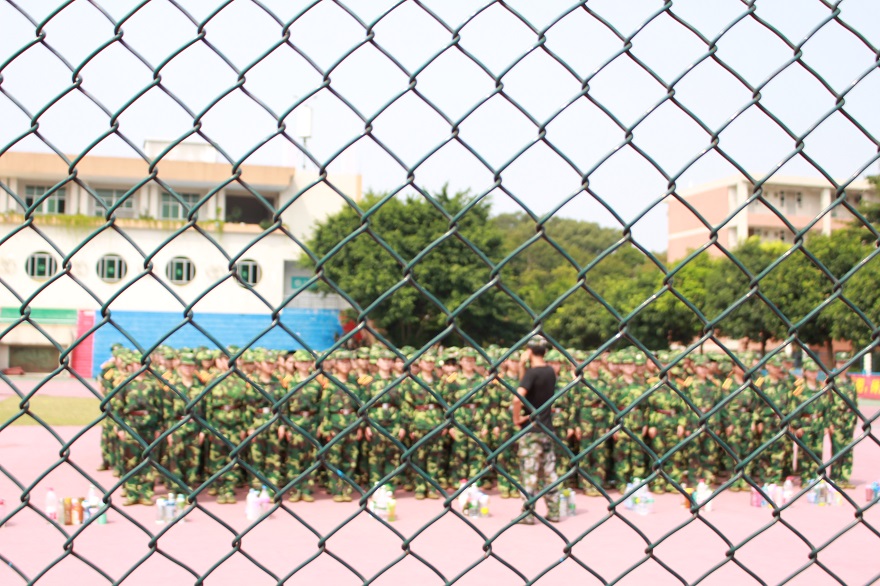视线移动至操场,男生们正咬着牙,一个跟着一个地跑圈,五圈、十圈、十五圈、二十圈……目光涣散,大汗淋漓,他们也许举步维艰,也许早已透支,但作为格斗班的一员,他们有他们的荣誉,他们不轻言放弃。他们苦练内功,为的就是在汇演时能够展现男儿本色的一面。数十圈的距离在他们眼里已不再是遥不可及,而是身体力行,凝聚汗水的里程。另一侧,一排排的学员整齐划一的扑倒在地上,别看这简单的动作:倒、停,他们能够轻松完成,是他们在背后不断的努力,是手臂所承受的一次次地疼痛换来的。手臂外侧的肌肉在一次次磨练后变得坚韧,胸廓在一次次的抗压后变得厚实。“我们可是男子汉!”
