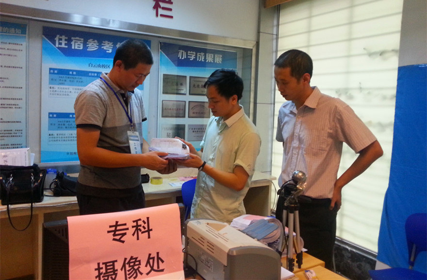 为了保证考生信息的完整,今年成教报考确认首次实行现场指纹录入。为进一步规范成考确认工作,白云区又减少了确认点,因此前来我校办理现场确认手续的考生人数激增。按照确认要求,报考系统需通过网络即时传送考生数据和图片,增加了为每位考生办理手续的时间。报名确认的第一天,有近800名考生前来办理现场确认手续,考生人数创我校自2007年承担此项工作以来的历史最高。