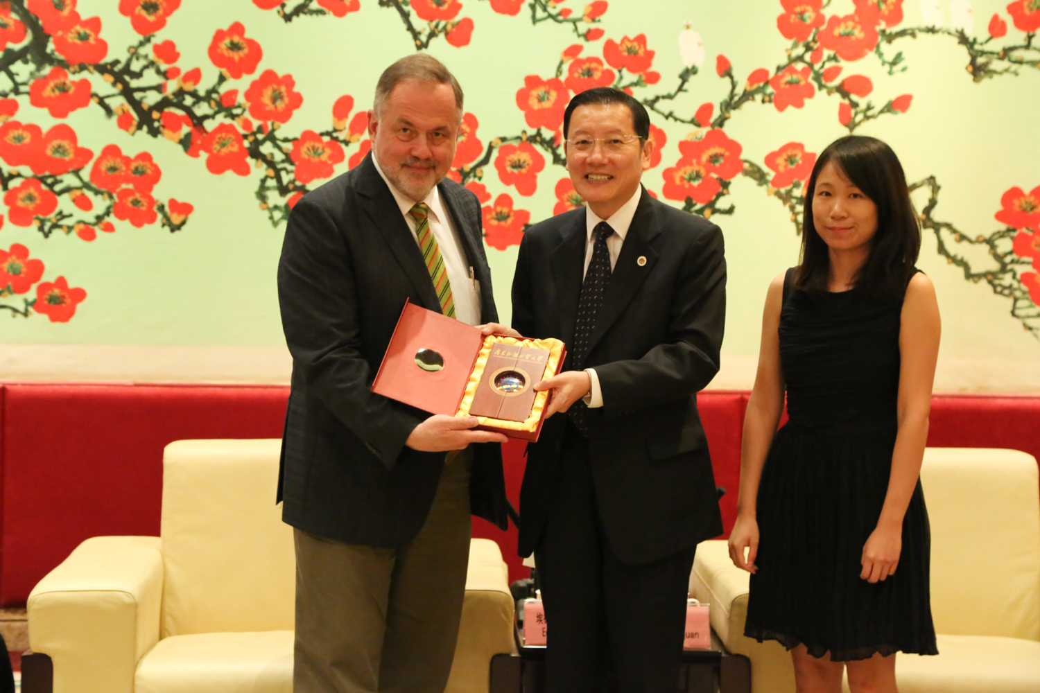 方凡泉向埃德华多·赫布尔赠送纪念品