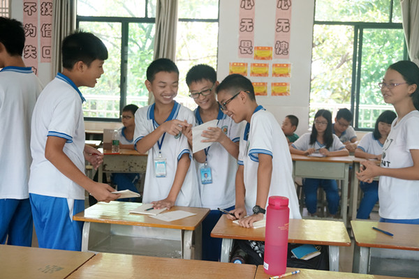 本网讯 7月25日,广外英文学院Grab The Light 3.0服务队开赴东莞寮步中学进行暑期社会实践活动。经过认真地准备,他们的课程寓教于乐,师生相处融洽。