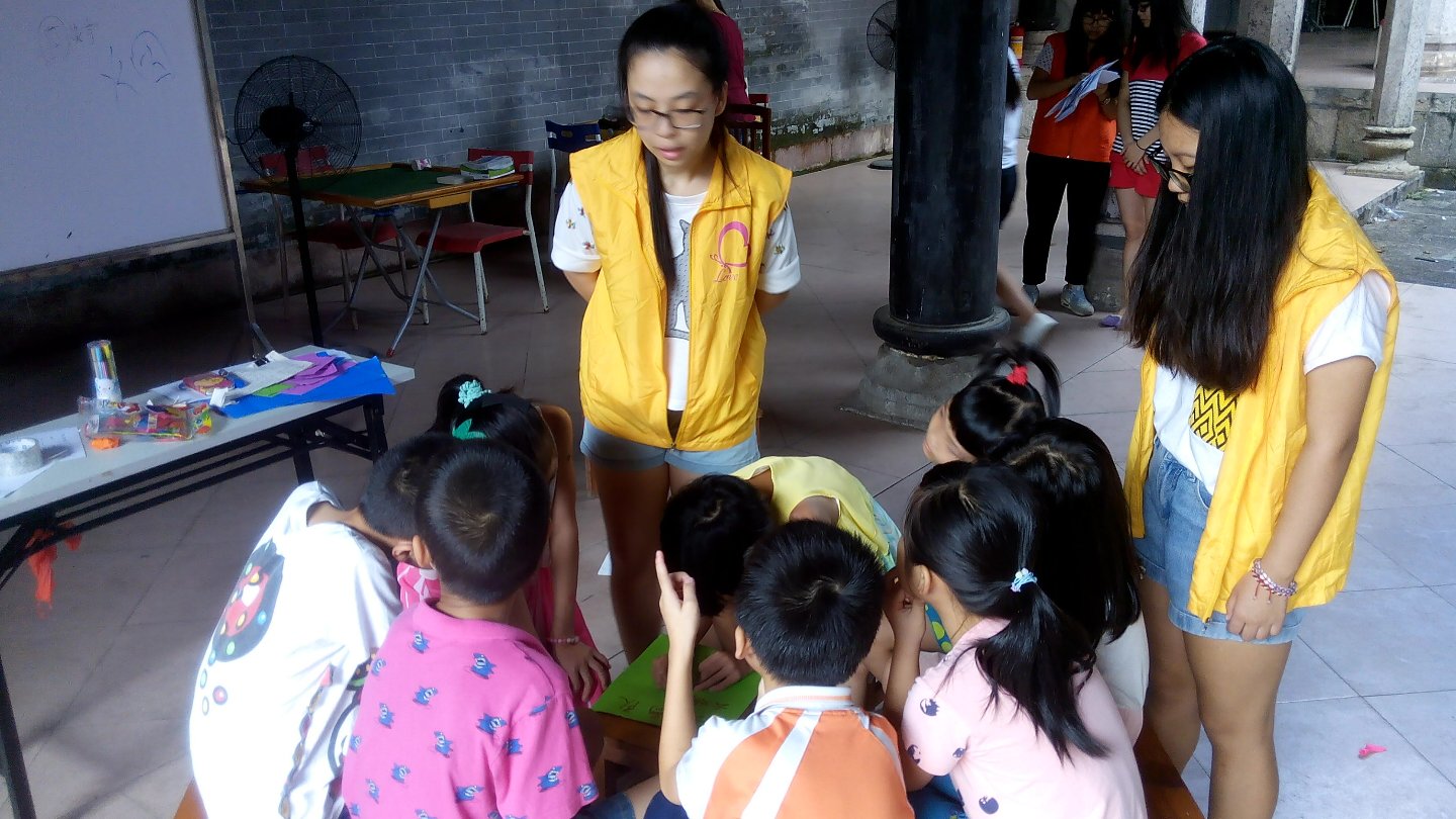 尽管祠堂内的教学条件很是艰苦,资源又十分匮乏,但似乎丝毫不减孩子们对于学习的热情与对知识的渴望。没有一张正式的学生课桌,孩子们便围坐成圈孜孜不倦地听老师讲课。为了让孩子掌握简单的日常用语和了解人类各种情感,阳光天使服务队为孩子们开设了英语与表演的课堂。同时,志愿者们还别出心裁地用趣味盎然的科学小实验来让孩子们更形象地学习和了解一些科学小常识。精彩充实的课程,让孩子们乐此不疲。