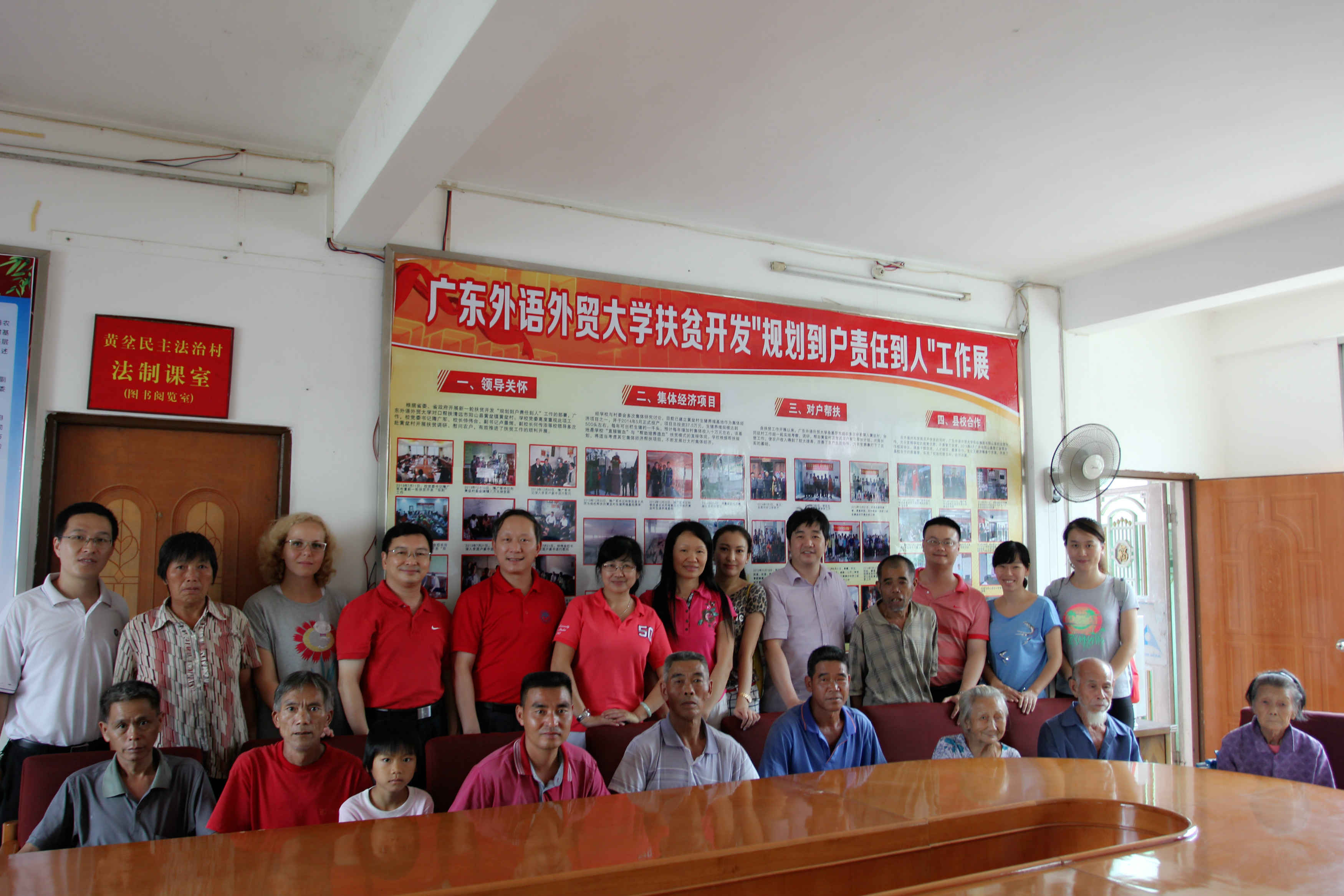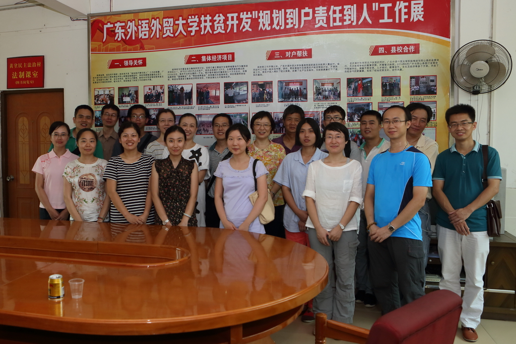 本网讯 2015年是广东省新一轮扶贫开发“规划到户,责任到人”的收官之年。近日,经贸学院党委书记赵烨、金融学院党委书记马庆华、图书馆党总支书记周秀娇、留学生教育学院党支部书记兼院长梁学宏、科研处代表兼经贸研究中心副主任刘胜以及新闻学院代表等一行赴阳山县黄坌村开展扶贫走访慰问工作。