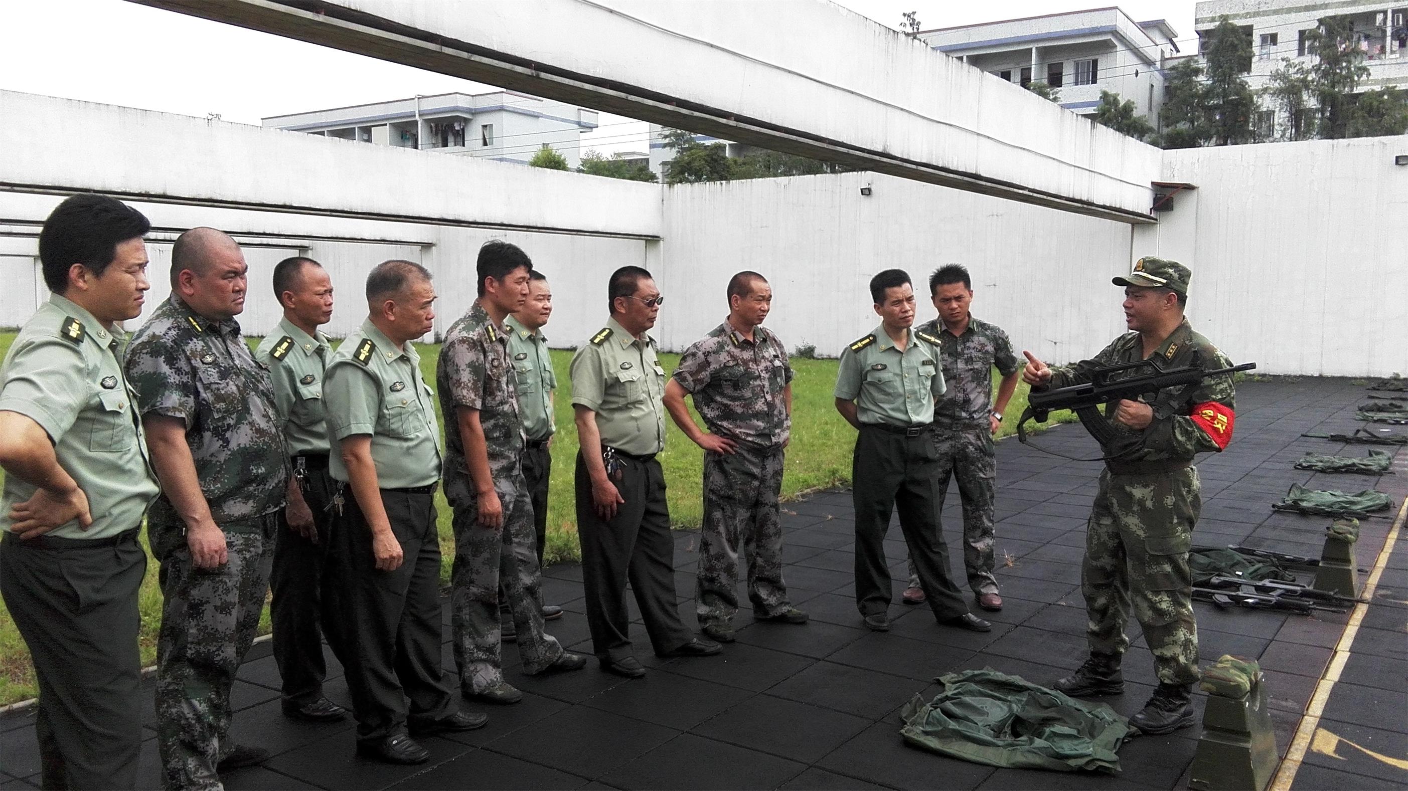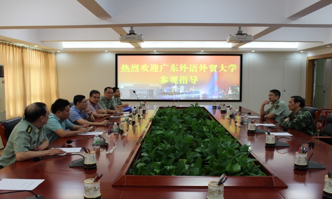 本网讯 军民团结一家亲,试问天下谁能敌。在八一建军节即将来临之际,我校副校长刘海春,校办主任植秀聪,学生工作部部长谢应东,武装部部长何越晖、副部长周知和钟雄波一行人等,于7月10日送去对武警广州指挥学院官兵慰问和崇高的敬意,并进行军事一日活动。武警广州指挥学院参加会见的有参谋长方文华及学生军训工作办公室部长肖兆勇。参加这次活动的还有我校武装部干部职工二十余人。
