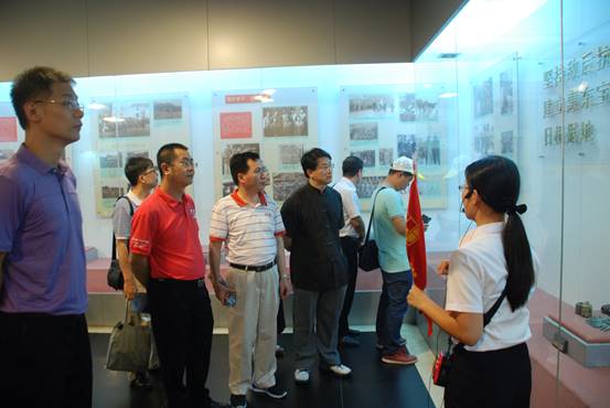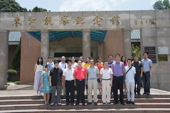 本网讯 为纪念抗日战争胜利70周年、庆祝建校50周年,我院党委于7月11日组织教工到惠州博罗东江纵队纪念馆开展“重温东纵历史,学习彰风事迹 ,铭记教师使命”主题党日活动。该此活动是学校党建工作坊项目之一。活动通过情景导入、事迹介绍等形式学习东江纵队的抗日历史,学习中共华南局负责人之一、我校创院院长、书记饶彰风同志的先进事迹,探讨我党和人民的关系等热点问题。我校组织部、统战部部长方迎生,组织员张璇受邀参加活动。