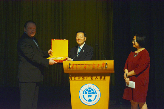米哈伊尔·梅德韦杰夫和方凡泉分别致辞,提到中俄关系历史悠久,今年5月国家主席习近平应邀出席了在莫斯科举行纪念卫国战争胜利70周年庆典并访问俄罗斯,进一步巩固了中俄两国全面战略协作伙伴关系,也向世界传达了“我们应当尊重历史,铭记历史”的讯息。方凡泉还代表我校向俄罗斯驻广州总领事馆赠送了礼物,对总领馆对活动的大力支持表示衷心的感谢。