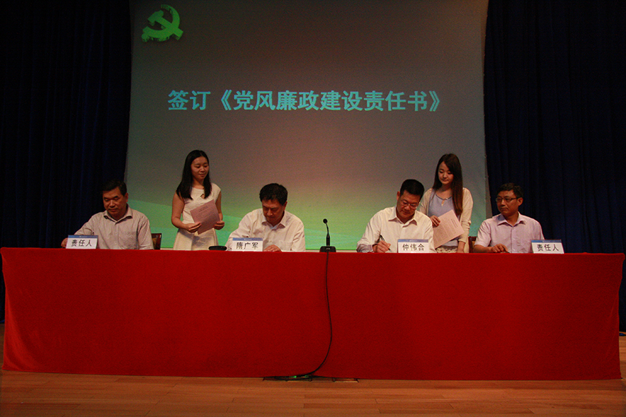 隋广军、仲伟合分别与职能部门、教学单位代表签署《党风廉政建设责任书》