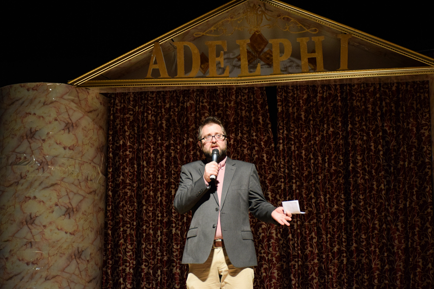 随着大幕缓缓拉开,该剧指导老师Duncan Lees作开场致辞,他表示,恰逢广外的五十周年校庆,也是广外英文戏剧社的重大转变之日。今晚的卖花女将以演配合一的形式演出。观众们即将看到的是一出以“转变”为主题的戏剧,一个中国女孩变身英国语言博士;众多中国学生化身英国贵妇、绅士。导演张鹏杰将带着他的创意为大家献上一场文化盛宴,希望大家细细欣赏。